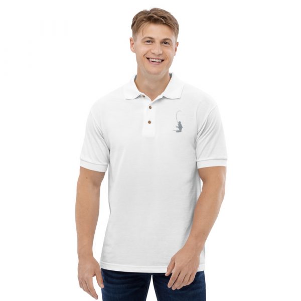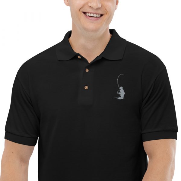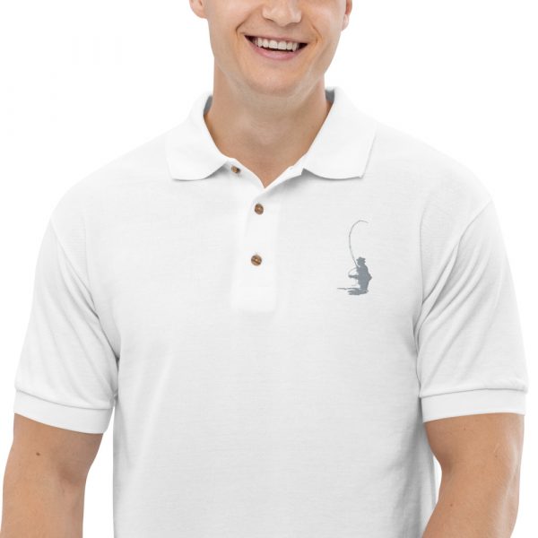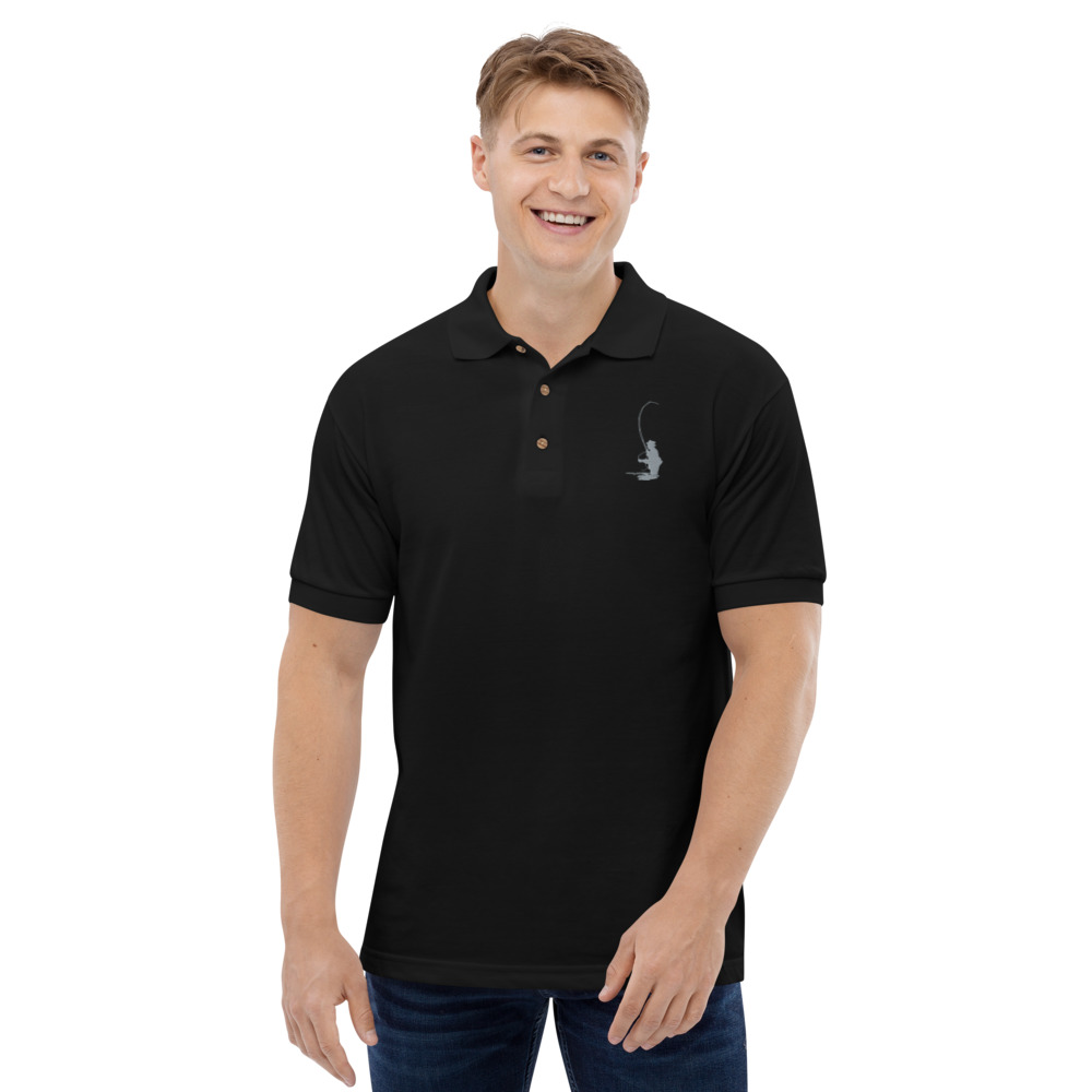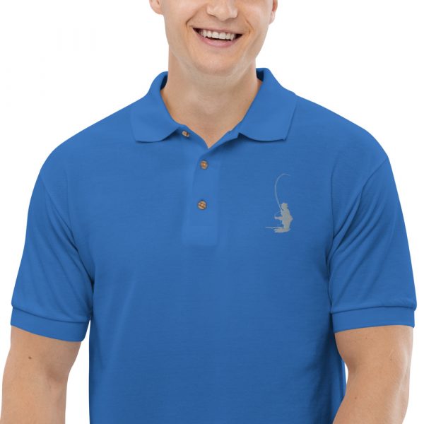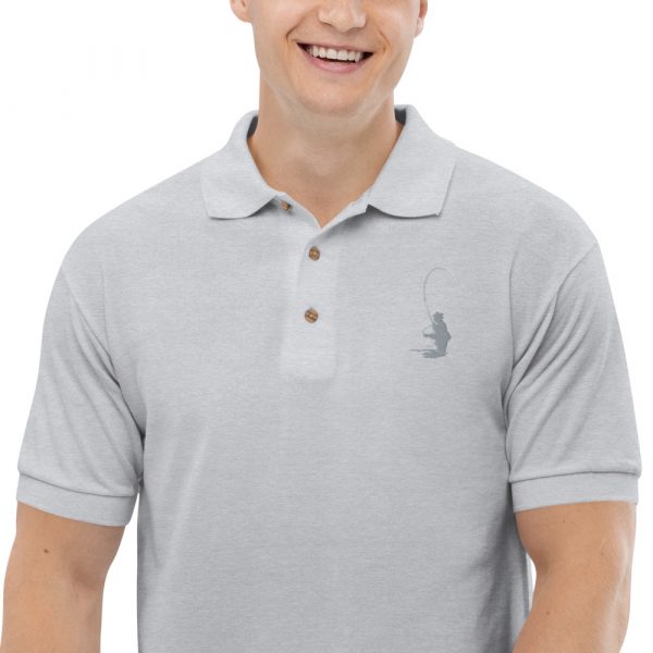 Fly Fisher: Silhouette Embroidered Polo Shirt (Men’s, Grey Stitching)