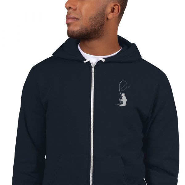 Fly Fisher: Silhouette Embroidered Hoodie Sweater (Unisex, White Stitching)